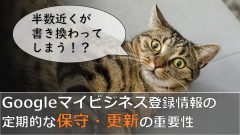 ノウハウ半数近くが書き換わってしまう!?Googleマイビジネス登録情報の定期的な保守・更新の重要性 Googleマイビジネスでは住所やカテゴリなどさまざまなビジネス情報が一般ユーザー(ローカルガイド)やGoogleによって意図しない情報に書き換えられてしまうことがあります。 12,300アカウントを調査を行った結果からわかった、ビジネス情報の更新・保守の重要性についてご説明します。2020年10月28日2020年10月30日ノウハウ